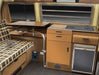 Like its predecessor, the VW T2 was also available in a camping version. The VW was equipped with four berths, several cupboards and a cooking area. And because of the pop-up roof, adults could even stand upright in the camper.