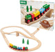 Includes a classic BRIO train with 3 wooden wagons in bright colours, bridge, switching tracks and wooden trees for scenic decoration.