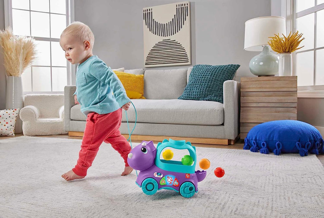 • Interactive dinosaur ball popper pull-toy with lights and 40+ songs, sounds and phrases.