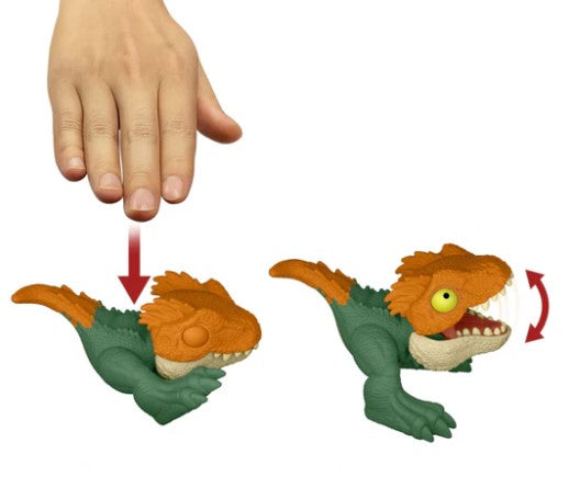 Get ready for thrilling action and adventure with Jurassic World: Dominion! Capturing the excitement of human and dinosaur interaction for young kids, these ferociously adorable toy creatures feature stylized designs of dinosaurs inspired by the movie. About 1.6 inches tall and 3 inches long, they have two fun, easy-to-activate poses, starting with a sleepy look. One press on the head, and the dinosaur figure pops into an active pose, ready to attack with mouth open. POP! Another tap on the head and the dinosaur figure goes back to its tame, sleepy look. These ferocious Wild Pop Ups make a great collectable gift for dinosaur lovers ages 3 years and up. Colours and decorations may vary.