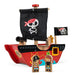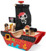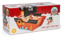 The Little Capt'n Pirate Boat features a fabric sail with a Jolly Roger motif, two pirates, a canon, turning wheel at the helm and sliding panels that reveal ideal hidey-holes for treasure.