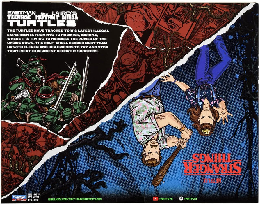 - THEMED PACKAGING | These Stranger Things and TMNT toys come securely packed in themed packaging, calling back to the 80's where it all started. The high quality box will protect the TMNT and Stranger Things toys from harm whether you want to give a Teenage Mutant Ninja Turtles gift or add to a hoard of collectibles.